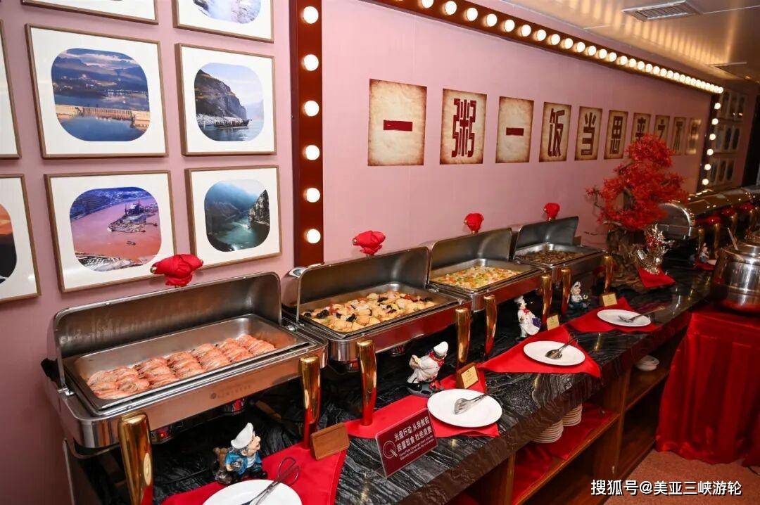 ✅ 船上设有VIP 餐厅和巴山食堂,自助餐每日更换主题,荤素搭配、营养均衡,从中式炒菜到现做寿司,兼顾情怀与口味。